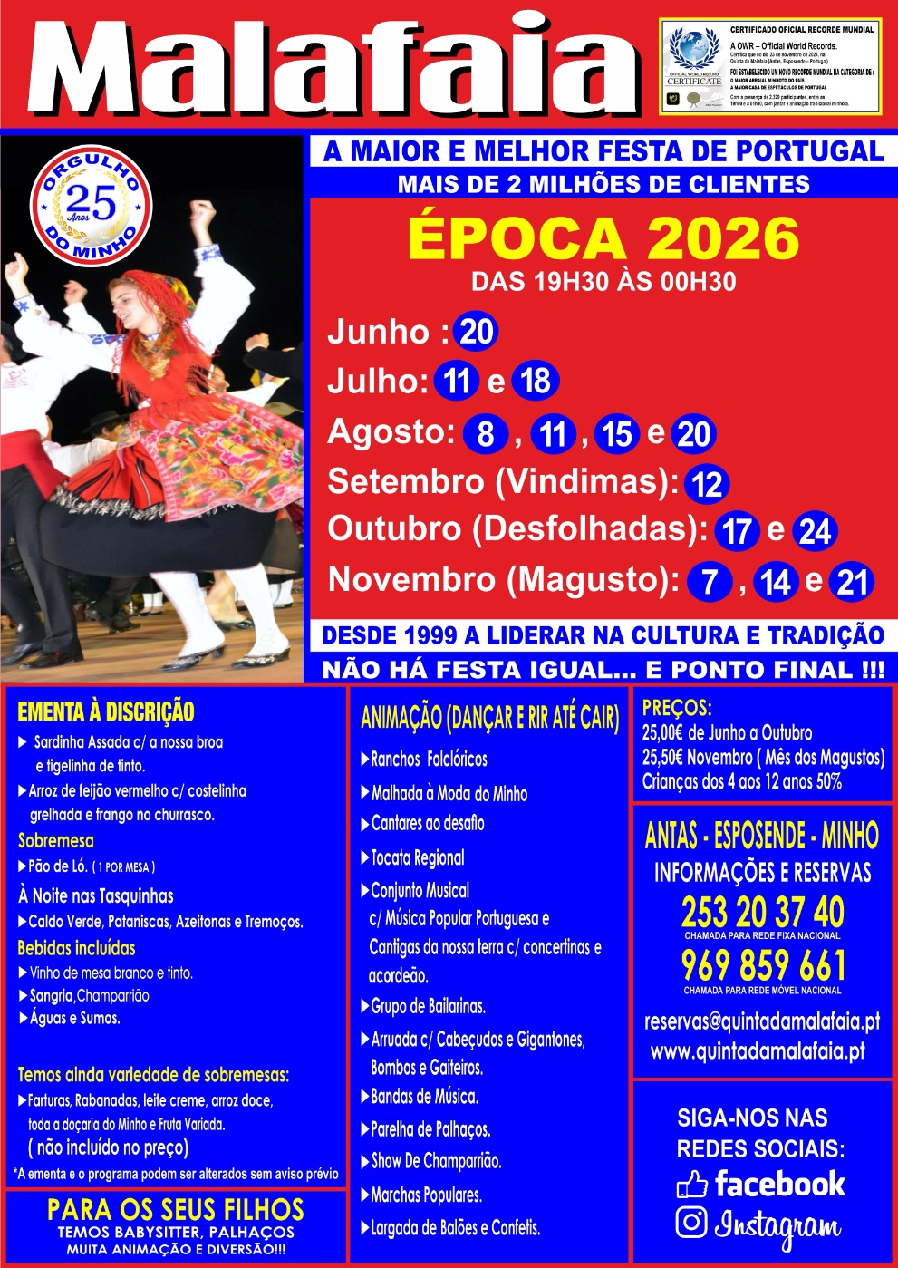 Uma festa única, de inspiração tradicional da região do Minho, norte de Portugal, são 5 horas em que se sucedem momentos de alegria que só o povo minhoto sabe realizar. Para o visitante, é uma experiência única, onde pode saborear a comida típica, sem limites, onde pode assistir a uma desfolhada e ver dançar ranchos e viver a música folclórica e popular nortenha, onde se irá divertir com a brejeirice e o humor minhoto, onde irá saborear os petiscos regionais, o caldo verde, a broa, beber o champarreão, dançar e cantar.